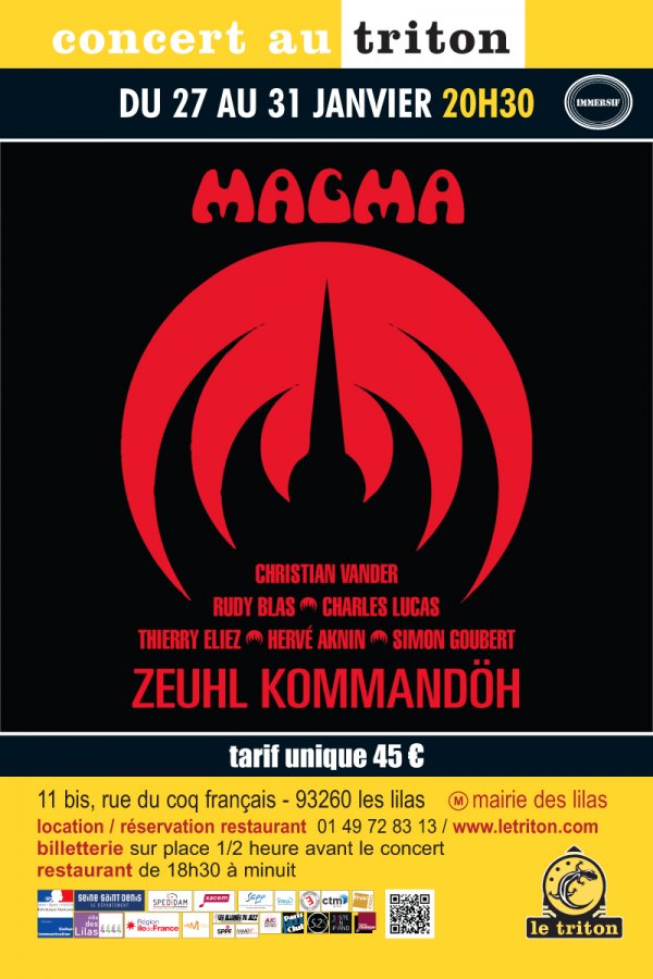 Cinq concerts exclusifs de Magma, du 27 au 31 janvier au Triton !