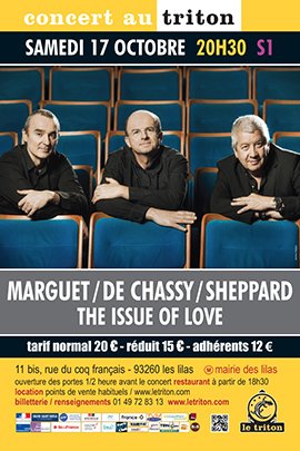 Des deux côtés de la Manche, Eliot, Byron, Auden, L’Hermite, Labé, Baudelaire et bien d’autres se sont illustrés sur ce thème universel. Incarné dans les deux langues par les voix enregistrées de Lambert Wilson et Delphine Lanson, le dialogue poétique engendre la musique du duo Marguet / de Chassy et de leur invité britannique Andy Sheppard. Ecriture musicale et improvisations surgissent de la musique des mots, portées par trois musiciens en totale osmose après sept années de collaboration, deux albums et des dizaines de concerts.