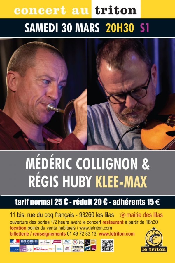 C’est une occasion unique de pouvoir assister à cette rencontre de choc entre Médéric Collignon et Régis Huby. Ce sont deux improvisateurs qui ont exploré toutes les côtes du continent Musique. Qu’ils aient la douceur de la soie ou la rugosité d’un arbre, leurs sons ont parcouru les cimes de la musique contemporaine (celle d’aujourd’hui ?) et l’écriture singulière et plurielle du Jazz…et d’autres styles bien sûr ! Ici, au Triton, ils vont mêler leurs outils acoustiques et électroniques, ce qui vous permettra d’être emmené sur leur navire à flot qui vous attend au milieu de leurs pédales d’effets, boîtes à rythmes et autres bidouilleries. Ils jetteront au feu leurs recherches et travaux respectifs afin de créer un matériau nouveau à multiples facettes colorées. Vous allez être en submersion entre les plages de frottements et les vagues de souffles. Fermez vos yeux et ouvrez vos plexus ! C’est une ré-création mondiale, venez avec nous pour vous amusiquer au beau milieu de cet océan de sons.
