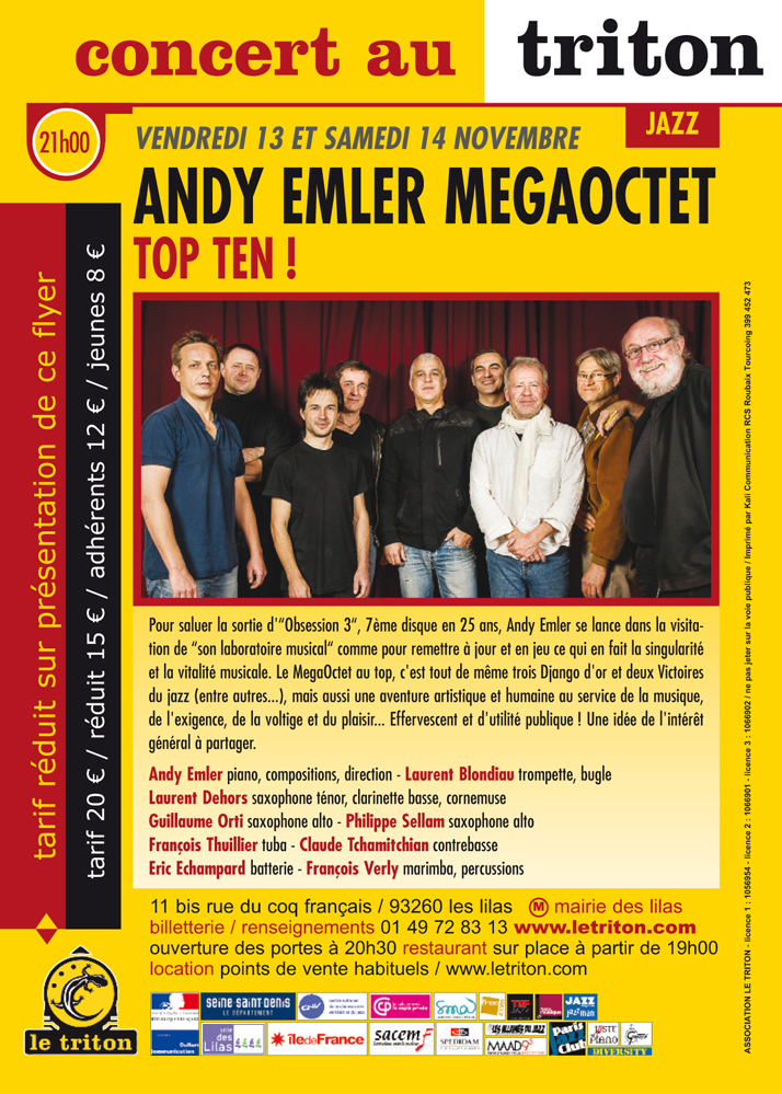 Pour saluer la sortie d'"Obsession 3", 7ème disque en 25 ans, Andy Emler se lance dans la visitation de "son laboratoire musical" comme pour remettre à jour et en jeu ce qui en fait la singularité et la vitalité musicale. Le MegaOctet au top, c'est tout de même 3 Django d'or et 2 Victoires du jazz (entre autres...), mais aussi une aventure artistique et humaine au service de la musique, de l'exigence, de la voltige et du plaisir... Effervescent et d'utilité publique ! Une idée de l'intérêt général à partager.