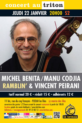 « La musique folk, celle que j’ai entendue à la fin des années 60, m'a donné mes premières sensations de musicien... C'est un univers habité et exigeant dont les textes véhiculent aussi bien des engagements politiques que des histoires humaines qui nous ressemblent. Ce projet, qui a donné lieu à un CD baptisé Ramblin’ - un mot qui évoque l'errance, le vagabondage - est né d'improvisations que Manu et moi avons développées lors de notre association avec Erik Truffaz. Ces “miniatures” ont toujours évoqué pour moi l'idée d'un folk moderne qui ne dirait pas son nom. D'où l'envie de les combiner avec des reprises emblématiques d'une musique dont elles émanent en substance : Bob Dylan, Neil Young... » Michel Benita