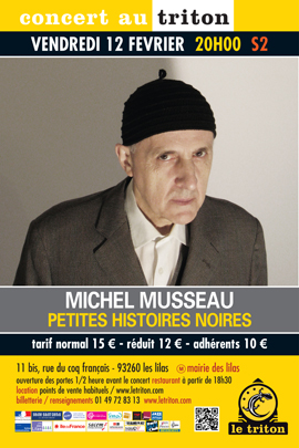 Des mots qui dansent, des notes qui chantent, une nostalgie qui égaye... Seul à son piano, Michel Musseau nous conte au micro ses petites histoires noires. Transperçantes, délicates et essentielles, ses chansons bouleversent.Un ton grave, une forte dose d'humour, un grand talent : Michel nous touche, nous émeut. Il est de ces rares poètes qui savent, à merveille, sublimer la quintessence des choses et de l'être. Directement, il nous touche, nous émeut. Il est de ces rares poètes qui savent, à merveille, sublimer la quintessence des choses et de l'être. On en redemande, on en reveut, tant il sait nous faire penser, nous faire rêver, le temps, au moins, d'une soirée. Après l’avoir reçu l’année dernière, au pied levé, en vedette américaine de sa muse, Elise Caron, nous sommes heureux de l’accueillir cette fois, seul, en totale intimité avec un public curieux de découvrir cet univers singulier, décalé et d’une redoutable intelligence.