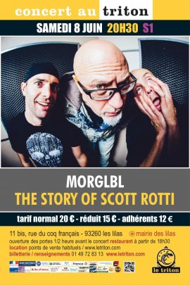 "Que ce soit la sortie d'un nouvel album, ou un événement tel que les 20 ans du trio, Mörglbl a toujours quelque chose à célébrer au Triton, qui reste un lieu indissociable de l'histoire du groupe ! Cette fois, c'est dans le cadre de la tournée de promotion de The Story of Scott Rötti que nos trois camarades bruyants et un peu potaches font un arrêt aux Lilas. Avec un nouveau son, une nouvelle approche et une setlist totalement réarrangée, Mörglbl s'apprête festoyer virilement et dans la joie avec le public haut de gamme du Triton ! On va ricaner, j'en ai bien peur !!" Christophe Godin