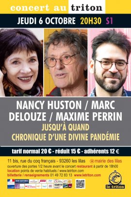 Le spectacle, né de l’album “Jusqu’à quand” et du livre “La Divine Pandémie”, est le fruit d’une triple complicité : un poète écrivain, une écrivaine poète, un musicien compositeur. S’ensuivit un dialogue poétique et musical à trois voix, chacune arborant sa propre ligne de chant, en harmonie avec l’ensemble. Une “lecture concertante” témoignant de la traversée d’une époque où la fonction essentielle de l’art s’est trouvée fragilisée. Inventer des images, des couleurs, des sons, ont fait office de contrepoison.