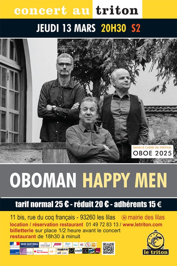 Ici, le timbre si particuliers du Hautbois et du Cor Anglais, associé à une guitare acoustique, procure immédiatement au trio une identité et un son unique. Avec ces Happy Men, Oboman prolonge son rôle de pionnier du hautbois jazz en expérimentant de nouvelles alliances sonores. Le répertoire, constitué de compositions originales et d'un florilège des plus belles pièces de célèbres jazzmen tels que Jim Hall, Richie Beirach, Keith Jarrett, Woody Shaw, Horace Parlan, Jimmy Guiffre et Mulgrew Miller, dessine en filigrane une filiation esthétique évidente. Les trois excellents musiciens de ce nouvel ensemble, riches de ces nombreuses influences, créent et partagent un nouvel univers musical original et passionnant. Ces Happy Men, hommes bienheureux et musiciens accomplis, sont en harmonie avec eux-mêmes et leur environnement. Ils ressentent une profonde satisfaction et plénitude à partager leur musique et espèrent simplement que le bonheur qu'ils éprouvent à jouer en trio, rayonne et inspire ceux qui les écoutent.