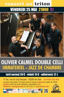 Pour cette création, Olivier Calmel fait le pari d’une formation inédite basée sur les sonorités des instruments à cordes et des percussions et s’entoure de musiciens d’exception, solistes et improvisateurs, équilibristes de l'instant. Le plaisir, le risque et le partage sont les enjeux de cette rencontre. Double Celli nous invite à découvrir un jazz de chambre où chacun sait préserver sa voix tout en la mettant au service de l’ensemble. Se muant parfois en duo, trio voire en quatuor le temps d’une rencontre intime et passagère, les musiciens ne cessent de virevolter et de se répondre dans un balancement subtil pour offrir une musique en état d’apesanteur, belle, intelligente et actuelle.