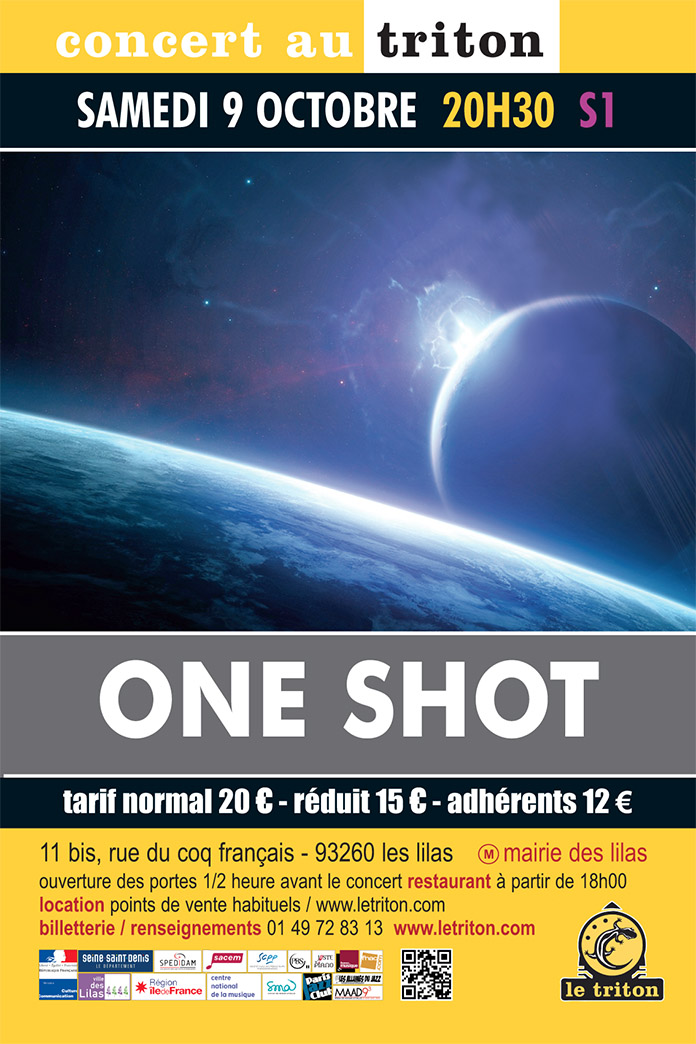 ONE SHOT fut sans aucun doute un des groupes les plus marquants de la scène progressive internationale. Ce fut aussi pour le Triton une très grande histoire d’amitié et de fidélité. A l’origine, composé de la jeune base rythmique de la reformation de MAGMA, basse, guitare, claviers, complétée par Daniel Jeand’heur à la batterie, One Shot avait su rebondir après le départ d’Emmanuel Borghi, avec l’intégration de Bruno Ruder. À l’annonce de la maladie de James, le groupe avait été contraint de s’arrêter. Les quatre musiciens compagnons de James dans One Shot ont répondu immédiatement présents lorsque nous leur avons proposé de lui rendre hommage en refondant, pour un soir, ONE SHOT, mais pas tout à fait dans sa version d’origine...