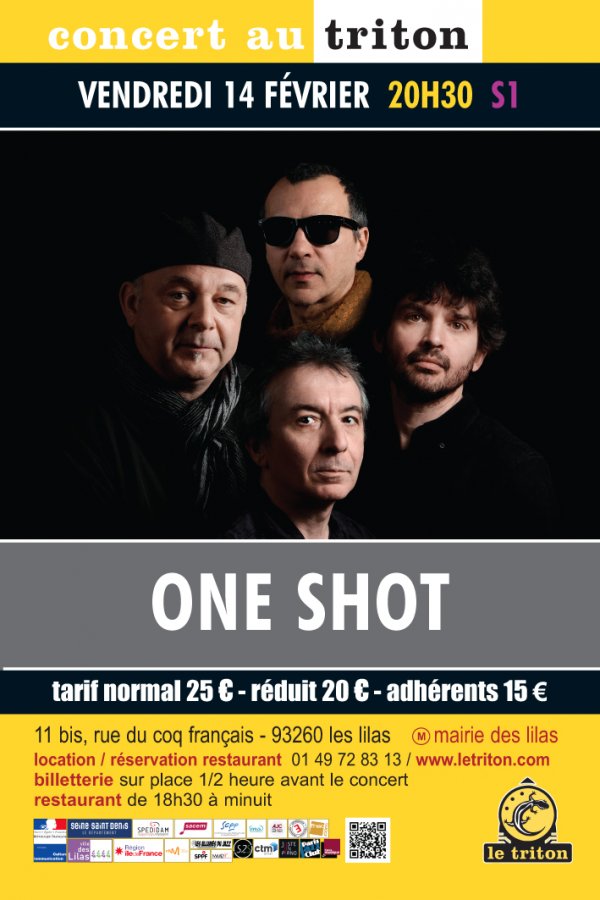 "Programmer One Shot un soir de Saint-Valentin pourrait sembler, à première vue, incongru. Sauf qu'entre Le Triton et ce groupe, c'est une histoire d'amour sans nuage de près d'un quart de siècle qui se prolonge pour notre plus grand plaisir, autant que celui des principaux intéressés. Car c'est au Triton que One Shot a enregistré la plupart de ses albums et donné ses concerts les plus mémorables, dont celui qui, fin 2021, marquait ses retrouvailles en mémoire du regretté James Mac Gaw. Depuis, le quatuor, dans sa nouvelle configuration à deux claviers, a continué à tracer sa route, publiant même un nouvel album, son septième, le bien nommé "111" (7 en langage binaire), sur le label du Triton bien sûr, fidèle à sa profession de foi de toujours : le mariage (décidément !) de ce que le jazz et le rock ont de meilleur à offrir." Aymeric Leroy
