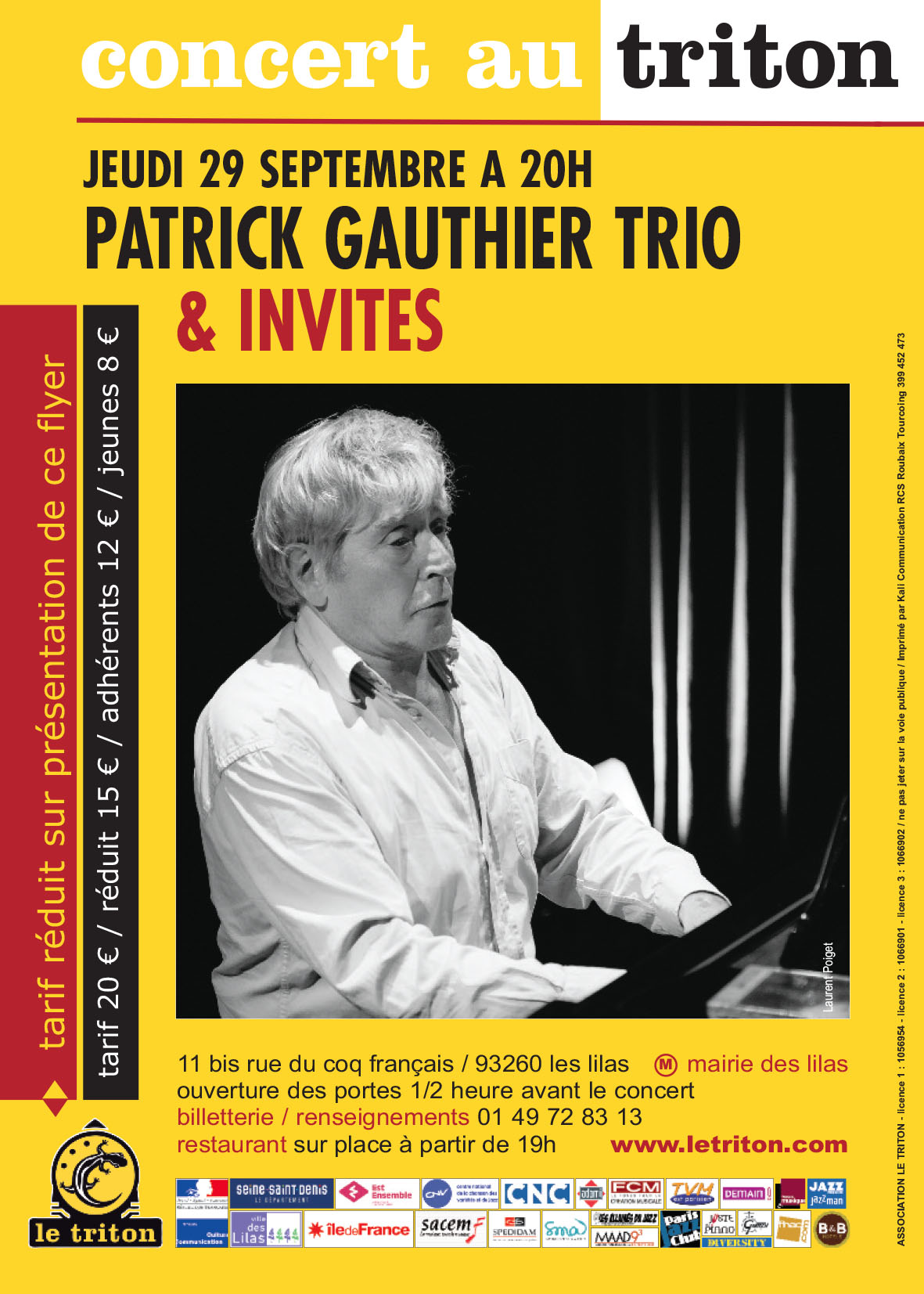 Le 14 mai dernier, Patrick Gauthier remontait sur scène pour jouer sa musique, en trio, après près de vingt ans d’absence. Nous étions heureux et honorés qu’il choisisse le Triton pour ce come-back tant attendu… En fusion totale avec un public déchaîné, il a mené la danse de main de maître, entouré des voix infatigables et épatantes d’Isabelle Carpentier et Antoine Paganotti. Conquis, nous avons souhaité redonner rapidement l’occasion à Patrick de revenir, en toute liberté, pour ne pas à nouveau se priver d’un tel plaisir trop longtemps. C’est chose faite ce soir avec son retour en trio accompagné cette fois d’invités, camarades de longue date, légendes vivantes de la musique zeuhl…