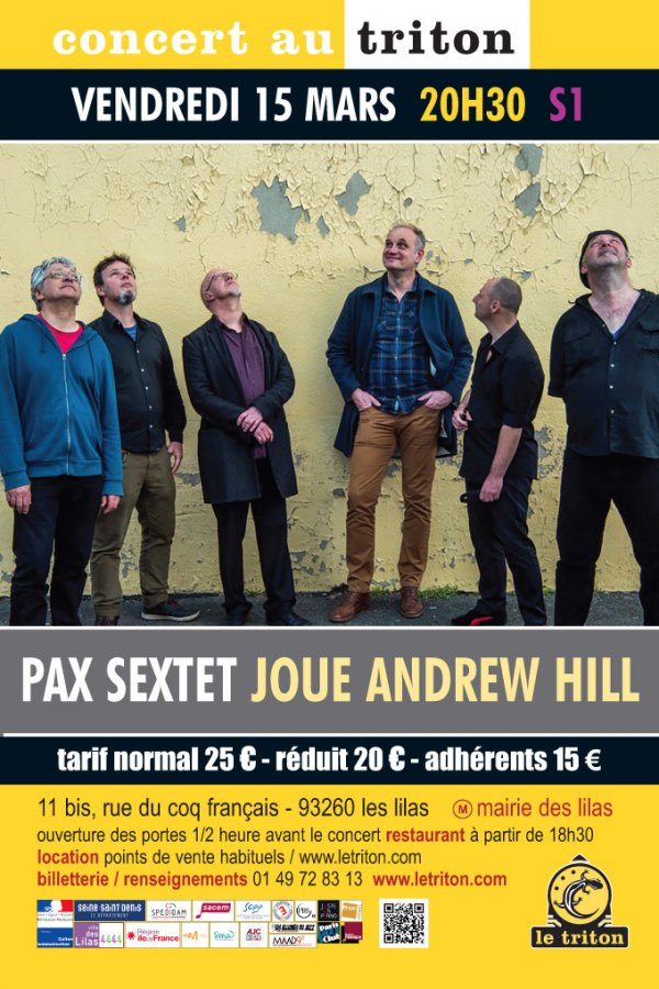 Pax est un quintet qui s’est donné pour mission de réinterpréter les oeuvres du génialissime pianiste de jazz américain Andrew Hill, qui participa activement au renouveau du jazz des années 60, au sein, entre autre du label Blue Note. C’est à l’initiative du batteur Daniel Jeand’heur et du pianiste Guillaume Hazebrouck que le 5tet fut créé réunissant le clarinettiste Olivier Themines, le saxophoniste Boris Blanchet et le contrebassiste Ivan Rechard. A chaque concert, le 5tet s’augmente d’un invité de prestige donnant naissance à un sextet sans cesse renouvelé. Ce soir c'est au tour du saxophoniste Jean-Michel Couchet de rejoindre la bande !