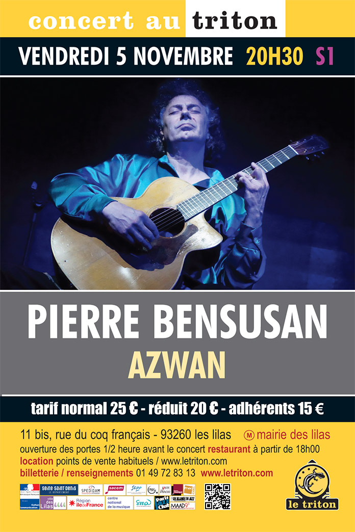 « Jouer au Triton est toujours une fête et 2020, une année qui restera dans l’histoire pour tout ce que nous avons vécu, chacun-une et ensemble. Après la traversée d’une année 2021 tout aussi atypique, je célèbre enfin la sortie de mon nouvel album “Azwan” sur le label du Triton et d’un nouveau livre “Guitar Collection” chez Hal Leonard. Je jouerai des passages d’Azwan ainsi que des nouvelles pièces écrites pendant les confinements. Privé de scène pendant des mois, j’ai hâte de vous retrouver. » Pierre Bensusan