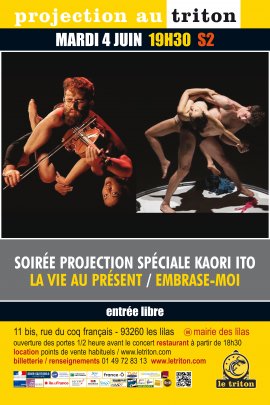 Entre janvier 2017 et février 2019, dans le cadre de sa quarte blanche au Triton, la jeune et prodigieuse danseuse Kaori Ito a rencontré des musiciens improvisateurs de la scène jazz française, artistes de génie et compagnons fidèles du Triton. Avec successivement Médéric Collignon, Emile Parisien, Elise Caron, Théo Ceccaldi et Thomas de Pourquery, elle a expérimenté toute la palette des possibles qu'offre une rencontre totalement improvisée entre la danse et la musique. Les plus beaux moments vécus par les artistes et le public à l'occasion de ces cinq soirées ont été captés et montés dans un documentaire, "La vie au présent", réalisé par Julien Vivante et projeté pour la toute première fois ce soir sur notre écran géant !