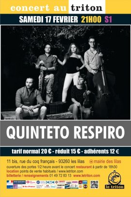 Pour son troisième passage au Triton, le Quinteto Respiro revient avec un programme entièrement renouvelé. Toujours très orienté sur la musique de Gustavo Beytelmann, le groupe proposera au public des compositions et des arrangements spécialement écrits pour leur formation par le grand maître argentin. Une musique riche, à la croisée entre le tango, le jazz et le classique, et résolument tournée vers l’avenir, à l’image de l’évolution actuelle de la musique tango en tant que courant musical à part entière. Invités à se produire en solistes avec l’Orchestre National de Lille en Mars 2018, les membres du Quinteto Respiro nous présenteront un échantillon version quintet de leur programme symphonique. Entre pièces novatrices, audacieuses, et grands classiques du tango et de la milonga, le Quinteto Respiro tire dans ce programme un véritable trait d’union entre tradition et modernité.