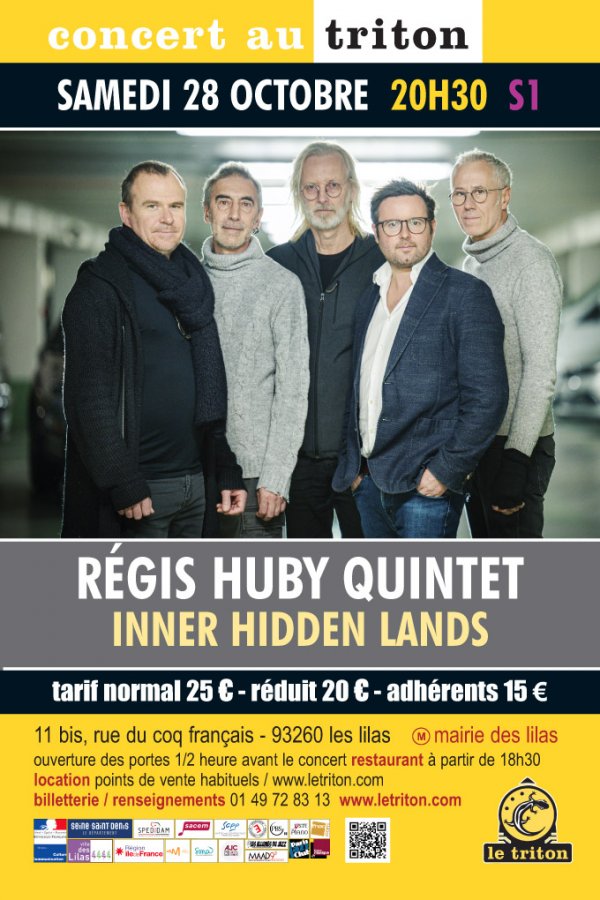 Dans cette formation de Régis Huby élargie au quintet, on retrouve ses fidèles compagnons de route Michele Rabbia et Bruno Chevillon avec deux invités, une des grandes figures de la musique électronique Eivind Aarset et le trompettiste au lyrisme inégalé Tom Arthurs. Dans ce nouveau répertoire “Inner Hidden Lands”, le Trio de base continue à explorer les possibilités acoustiques de leurs instruments associé à l’électronique, œuvrant à élaborer une texture instrumentale dense, enrichie par les interventions du guitariste construisant un socle sonore propice au travail de la matière dans toutes ses dimensions, ligne, profondeur, espace. Ils nous proposent une musique électroacoustique puisant son énergie dans le jazz rock, son inventivité et expressivité dans la grande tradition des musiques improvisées collectives, sa grande machinerie rythmique dans les musiques contemporaines. Ce soir, Régis Huby et sa bande nous présentent officiellement leur nouvel albul “Inner Hidden Lands”, enregistré sur cette même scène, et paru sur notre label !