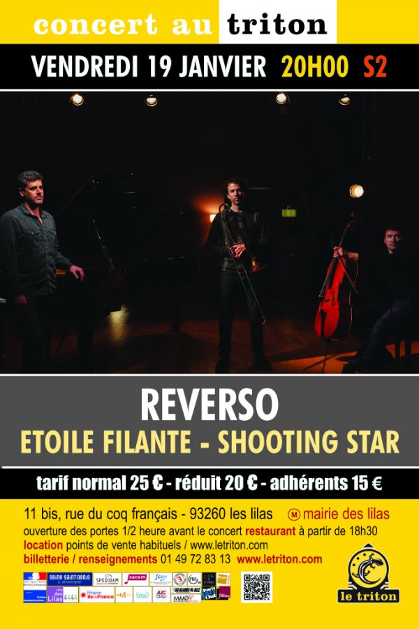 Frank Woeste, pianiste et compositeur a su développer, au fil des albums et des tournées, un langage singulier qui fait de lui un artiste inclassable et polymorphe, sideman de musiciens prestigieux (Ibrahim Maalouf, Youn Sun Nah...). Vincent Courtois, violoncelliste extraordinaire qu’on ne présente plus, surtout au public tritonien, est aussi à l’aise dans le répertoire classique que dans les improvisations libres ou encore dans la chanson. Ryan Keberle, est quant à lui un tromboniste incontournable de la scène new yorkaise. Tous trois prolongent, avec des références nouvelles, la même ambition de sortir les mélomanes de leurs chapelles et les mettre au diapason d’un ailleurs inclassable, non étiquetable, où une certaine élégance à la française rencontre l’énergie américaine. Reverso est un groupe transatlantique regroupant des instrumentistes et improvisateurs hors pair. Le cinquième album du groupe, « Etoile filante – shooting star » (janvier 2024) s'inspire de l'esthétique de la compositrice Lili Boulanger, compositrice pionnière au destin tragique.
