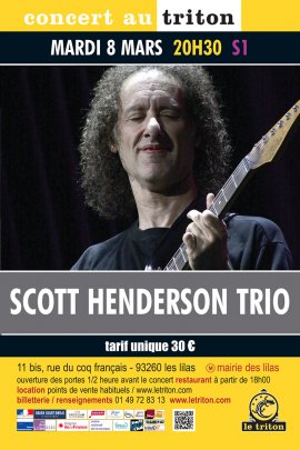 Le guitariste américain Scott Henderson est connu partout dans le monde pour avoir joué aux côtés des plus grands, et notamment de Joe Zawinul, Chick Corea, Jeff Berlin et Jean-Luc Ponty. En 1984, il fonde Tribal Tech avec le bassiste Gary Willis, groupe qui va très rapidement devenir une référence dans l’univers du jazz fusion. Aujourd’hui, c’est en trio avec deux musiciens français de talent que nous connaissons bien au Triton, Romain Labaye et Archibald Ligonniere, que Scott Henderson nous fait l’immense honneur de venir jouer pour la première fois sur notre scène. On ne va pas se mentir, comme vous, on se languit sérieusement de voir cette légende vivante la fouler !