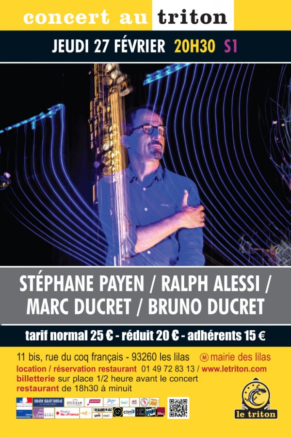 Dans le cadre de sa résidence au Triton, Stéphane Payen présente une fois encore un nouvel ensemble et un nouveau répertoire. Il s’agira ici d’une musique chambriste. Quatre improvisateurs aux influences et expériences multiples viennent alimenter le discours du quartet de compositions spécialement écrites et/ou arrangées pour l’occasion. À l’origine de cette rencontre, Baldwin En Transit, une aventure protéiforme qui ont mené le saxophoniste et le guitariste à développer un travail en duo puis à imaginer cette rencontre inédite avec des musiciens qu’ils admirent. Une occasion, trop rare, d’écouter en France Ralph Alessi, immense trompettiste et compositeur américain, compagnon de route de Steve Coleman, Ravi Coltrane, Jason Moran, Don Byron, Fred Hersch ou Uri Caine...