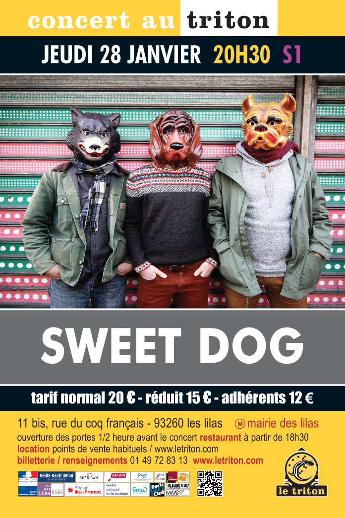 Pensé au début comme un simple laboratoire d’improvisation et de recherches sonores, le trio Sweet Dog a progressivement produit un son unique et une musique plus affirmée en tant que “composition instantanée” en empruntant au free jazz, au rock, à la pop, à l’improvisation libre et depuis peu à la musique électronique. Derrière l’image à la fois drôle et loufoque de trois
