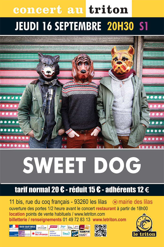 Pensé au début comme un simple laboratoire d’improvisation et de recherches sonores, le trio Sweet Dog a progressivement produit un son unique et une musique plus affirmée en tant que “composition instantanée” en empruntant au free jazz, au rock, à la pop, à l’improvisation libre et depuis peu à la musique électronique. Derrière l’image à la fois drôle et loufoque de trois chiens fougueux, la douceur a toujours eu sa part dans les improvisations du trio. Mais ce “sweet” il ne faut pas le voir comme une sucrerie sentimentale mais plutôt comme une réelle puissance, au sens où l’emploie l’essayiste Anne Dufourmantelle. C’est cette puissance de transformation silencieuse opérant à chaque instant entre les trois musiciens qui permet à Sweet Dog de franchir une nouvelle étape musicale. La douceur est tapie dans chaque geste, chaque note, silence, cri, hurlement ou bruissement, comme moyen d’atteindre la vérité de l’instant, celle d’une musique qui se dévoile à l’auditeur en même temps qu’aux interprètes. Sans prétention, tel est le geste de l’improvisation collective au sein de Sweet Dog : laisser à la musique le soin de se faire d’elle même. Avec en particulier l’ajout d’un clavier joué par Julien Soro, la matière sonore s’éloigne de l’esthétique de leur premier opus, plus conventionnelle (guitare/sax/batterie), pour aller au plus singulier, au plus intemporel du son de Sweet Dog.