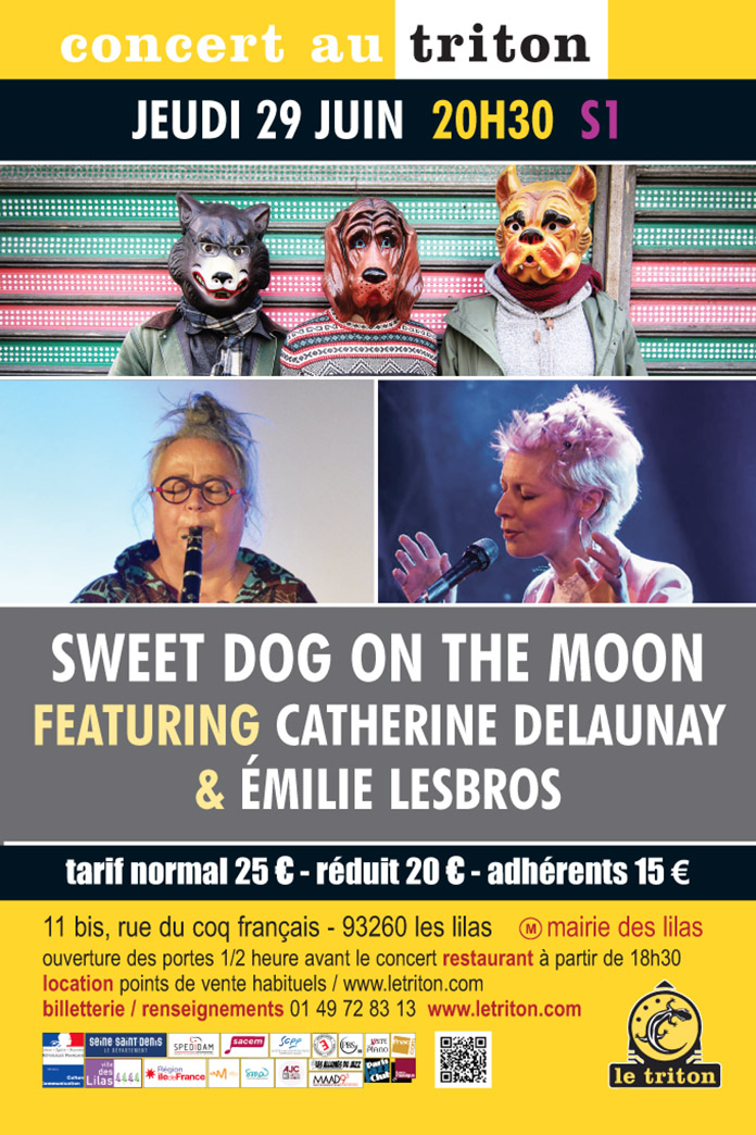 La création “Sweet Dog on the Moon“ s’axe autour de la rencontre du trio Sweet Dog avec deux musiciennes majeures du paysage des musiques improvisées : la multi-clarinettiste Catherine Delaunay et la chanteuse Émilie Lesbros. La singularité de leur discours d’improvisatrice et la puissance de leur voix propre vont enrichir la matière brute du son du trio originel. Le jeu libre et la capacité à créer sur l’instant des compositions aux formes plus ou moins complexes resteront le ferment principal du groupe. L’identité sonore de Sweet Dog sera bouleversée par l’apport du chant et de la clarinette qui permettront un décollage lyrique et des enchevêtrements mélodiques renforçant l’aspect orchestral du trio devenu quintet. Au spectre des influences pop-rock de Radiohead et Alasnoaxis de Jim Black aux influences jazz de Tony Malaby et Chris Speed, viendront s’ajouter celles de la musique contemporaine minimaliste et électronique.