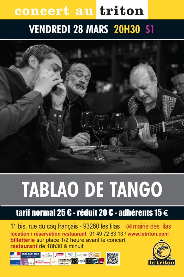 Des solistes argentins d’exception autour d’un maestro de la guitare : le Tango à l’essentiel. Avec Franco Luciani, El Chino Laborde, Rudi Flores et leurs invités. Le Tablao de Tango, ou le blues du port du Rio de la Plata, est une plongée radicale dans le Tango pure souche, tel qu’il est né dans l’embouchure du Rio de la Plata fin XIXe. Loin du "tango for export", des paillettes et de ses avatars spectaculaires, ce plateau de luxe de grands solistes - et leurs instruments voyageurs, guitare, harmonica et voix - incarne un blues portuaire sans fioritures. Une philosophie des bas-fonds, tel le fado ou le rebetiko, un chant d'exil « d’alcool et de désamour », protéïforme, toujours bien vivant aujourd’hui dans les « boliches », les bistrots portègnes.