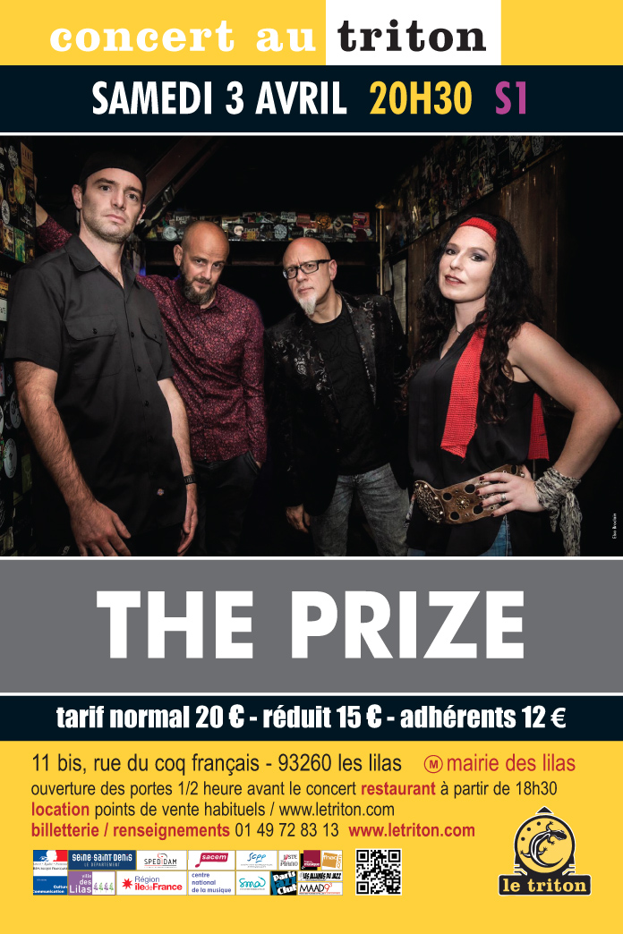 Attention, oubliez tous les projets dans lesquels vous les avez tous les quatre déjà croisés au Triton ! Maggy, Christophe, Ivan et Aurel débarquent avec une toute nouvelle fantaisie musicale intitulée The Prize ! Du rock au sens le plus large du terme, parfois complexe, évidemment puissant, et pourtant sensible et subtil, et qui se joue des étiquettes ! Autour d’une voix puissante et chargée d’émotion, d’une guitare d’acier et d’une rythmique implacable, The Prize déroule son tour de force en forme d’uppercut dans un gant de satin avec une aisance et une humanité désarmantes !