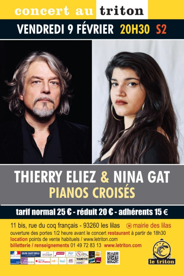 Thierry Eliez, maître établi de l’improvisation et de l’exploration pianistique, invite Nina Gat, jeune pianiste de la scène Jazz qu'il remarque au cours de Master-classes. Interpellé par la fluidité de son jeu, la conviction de son propos, et une esthétique solaire, il choisit de l’inviter en pianos croisés sur la scène du Triton pour ouvrir la voie de nouvelles rencontres avec de jeunes espoirs du piano Jazz… Une initiative à suivre de très près.