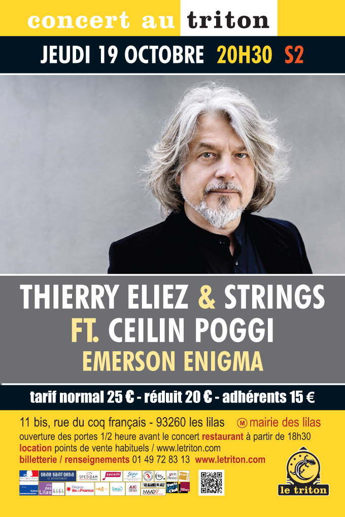 Le pianiste virtuose et chanteur Thierry Eliez, rend un hommage acoustique « à couper le souffle » au compositeur Keith Emerson (Jazz Magazine), leader du trio mythique Emerson Lake & Palmer. Venu en 2016 pour un premier hommage en solo qui a fait le tour du globe, c’est avec le quatuor à corde Manticore et la vocaliste Ceilin Poggi qu’il enregistre son nouvel album Emerson Enigma, "Un hommage acoustique mené par la grâce." (Le Monde). Les arrangements de cordes, la symbiose des voix et le jeu pianistique puissant de Thierry Eliez subliment une musique de l’outrance et de l’avant-garde électronique, pour devenir oeuvre classique du patrimoine musical du 20ème siècle.
