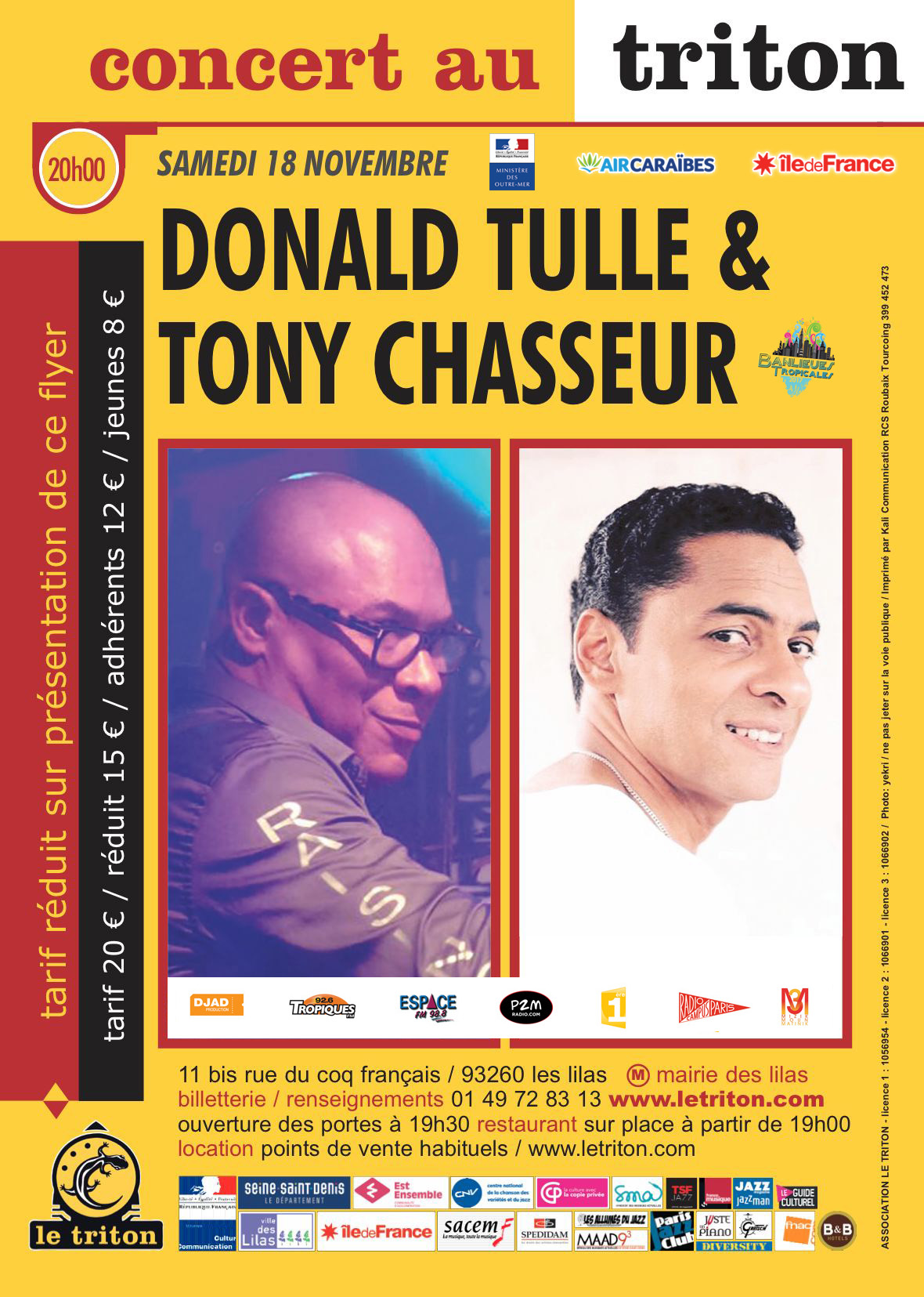 Tony Chasseur chant - Ronald Tulle piano - Michel Alibo basse - Thomas Bellon batterie - Alain Dracius percussions