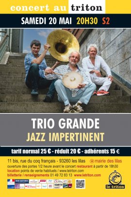 Nos Trois Mousquetaires fêtent trente ans de complicité musicale avec un sixième album, Impertinence, qui a reçu le CHOC dans le Jazz Magazine. Trio Grande est le groupe de la maturité, du bonheur trouvé au fil de l’expérience et au gré du temps, un hymne à la vie et à la beauté, à l’écart de toute intention niaise. Une puissance parfois terrible cohabite constamment avec une délicatesse surnaturelle. Dans des compositions que l’on aimerait presque qualifier “à succès”, tellement elles vous emmènent très haut dès les premières secondes - c’est souvent un signe - les comparses habitent leur musique avec une fièvre lyrique admirablement servie par les entrechats tantôt d’un Michel Massot inventif, tantôt d’un Michel Debrulle puissamment architectural. Puis Laurent Dehors leur rend la pareille, avec une rigueur de phrasé alliée à une coloration splendide. Le spectateur est pris comme au creux d’une main et déposé de l’autre côté du paysage, passablement transfiguré.