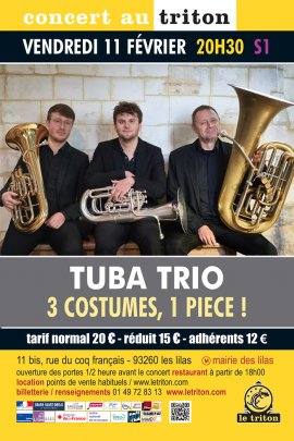 Fruit de la rencontre entre trois musiciens du nord de la France, chacun doté d’un solide cursus musical multi-esthétique, le Tuba Trio voit le jour en 2021. Cet Ensemble jubilatoire rassemble trois fortes personnalités de la scène “tubistique” française : l’immense et incontournable François Thuillier et les deux jeunes prodiges Tom Caudelle, Jean Daufresne. Explorateurs passionnés