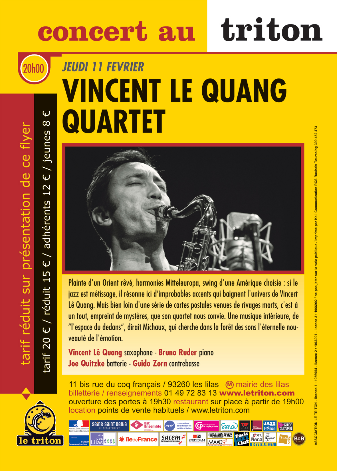 Plainte d'un Orient rêvé, harmonies Mitteleuropa, swing d'une Amérique choisie : si le jazz est métissage, il résonne ici des improbables accents qui baignent l'univers de Vincent Lê Quang. Mais bien loin d'une série de cartes postales venues de rivages morts, c'est à un tout, empreint de mystère, que son quartet nous convie. Une musique intérieure, de "l'espace du dedans", dirait Michaux, qui cherche dans la forêt des sons l'éternelle nouveauté de l'émotion.