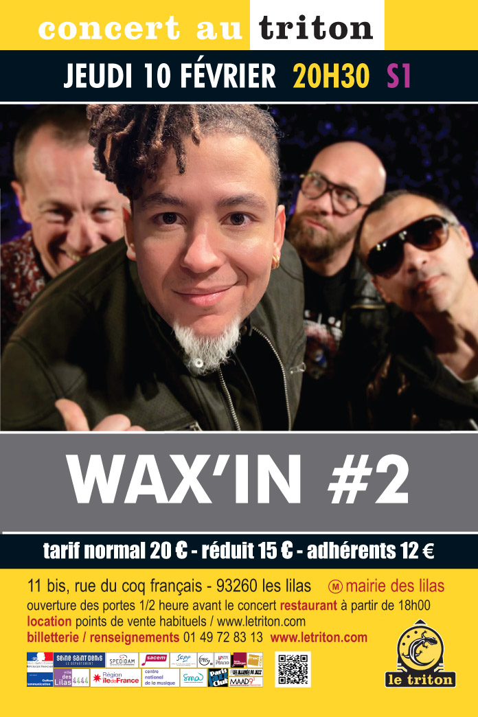 En 2015, à l’initiative de notre directeur Jean Pierre Vivante qui rêvait de réunir sur scène les quatre génies que sont Christophe Godin, Médéric Collignon, Philippe Bussonnet et Franck Vaillant, Wax’in voyait le jour. Un disque et des dizaines de concerts plus tard, on ne peut que se réjouir de l'existence de ce quartet inclassable qui s’amuse à surfer sur les rives du jazz, du rock, du métal, du punk, de la musique progressive et de la Zeuhl. En 2022, le guitar hero Christophe Godin passe le relais au jeune prodige Gabriel Gosse pour poursuivre l’aventure de ce groupe hors norme, cet ovni au gros son envoûtant et contagieux, qui serait parvenu à arracher un sourire à Buster Keaton et même peut-être un petit moonwalk à Balladur.