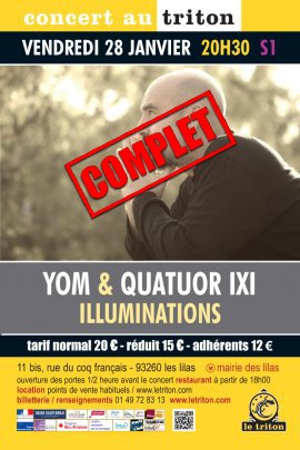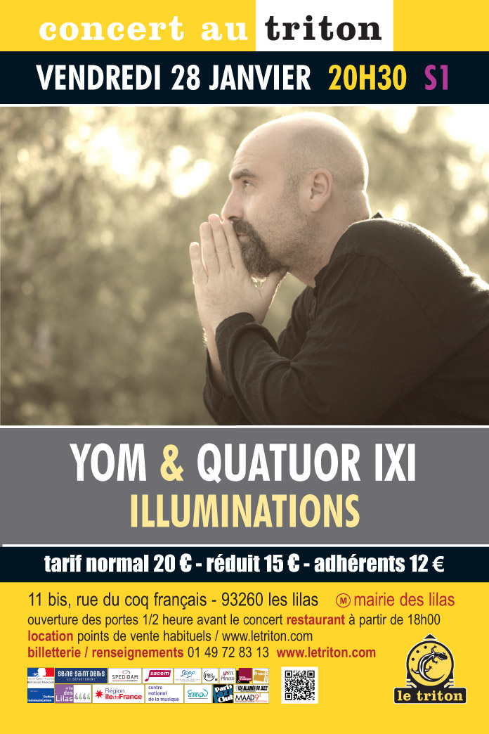 Immense clarinettiste que l’on ne présente plus, Yom est un explorateur qui, du klezmer traditionnel revisité aux musiques électroniques, en passant par le rock, l’americana, la musique classique et contemporaine, place toujours au-dessus de tout l’approche de l’âme humaine mêlée à un besoin d’universalité et de spiritualité. C’est un grand honneur et une grande joie que de le voir débuter cette année sa première quarte blanche au Triton. Et pour démarrer ce nouveau parcours de compagnonnage, Yom fait appel aux quatre virtuoses du Quatuor IXI pour se replonger dans son répertoire “Illuminations” et donner vie à une nouvelle oeuvre, oscillant entre musique classique occidentale, musique contemporaine et musiques modales d’Europe de l’Est et du Moyen Orient.